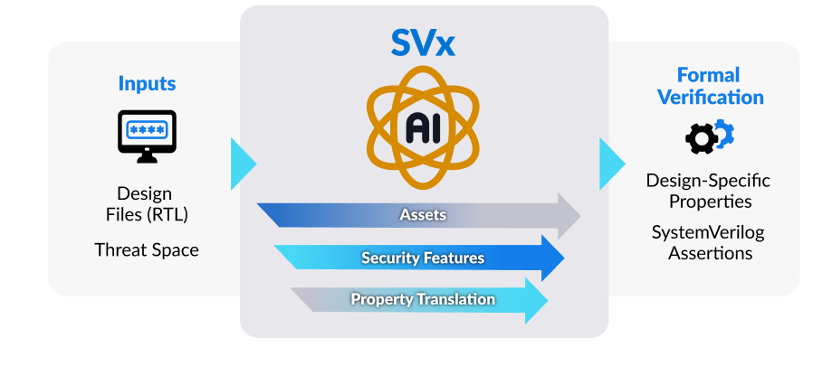 SVx generates clear, human-readable natural-language security requirements and automatically translates them into precise SystemVerilog Assertions. These SVAs plug directly into any industry-standard formal verification flow.